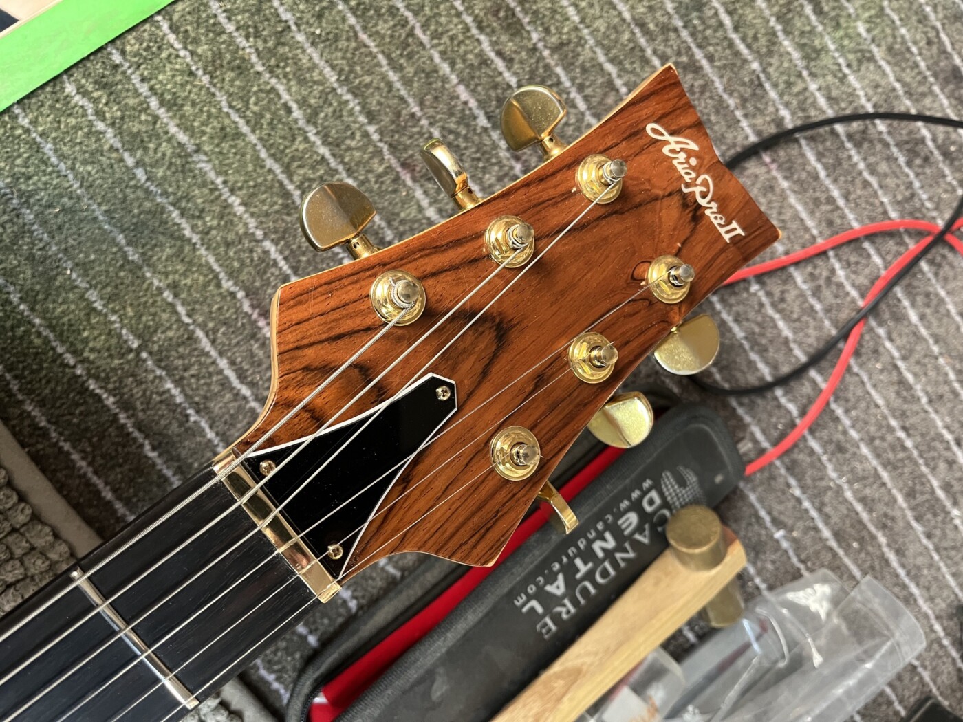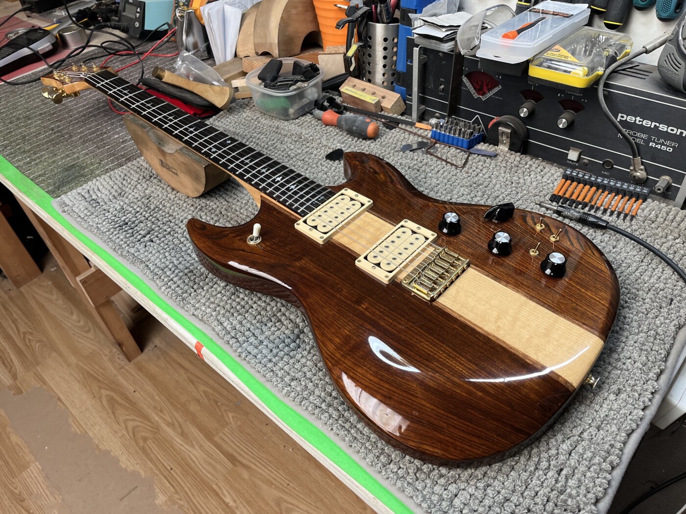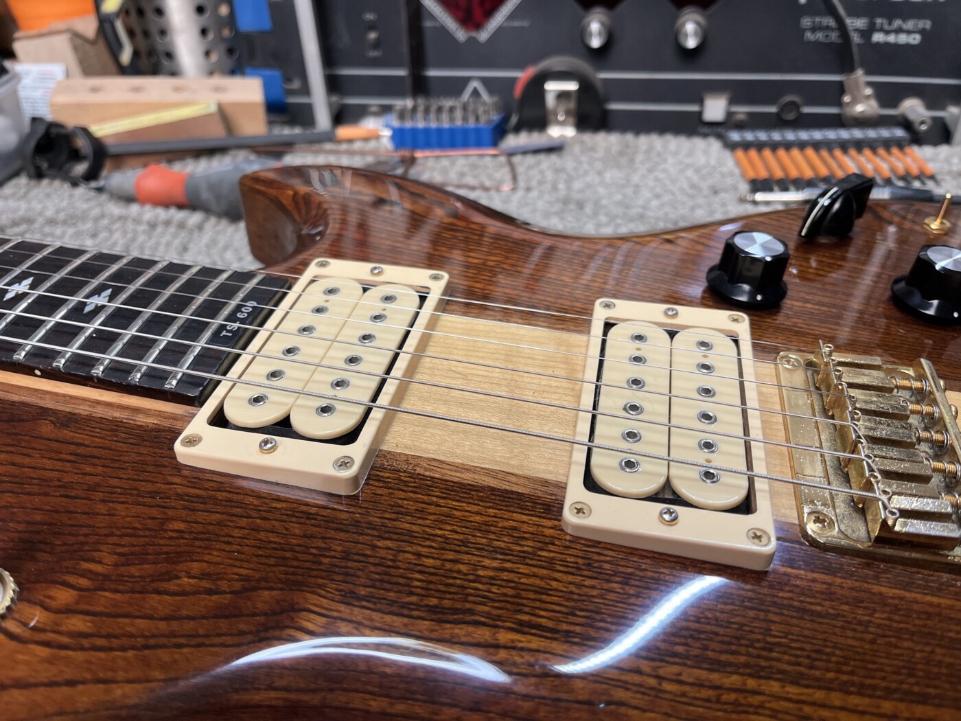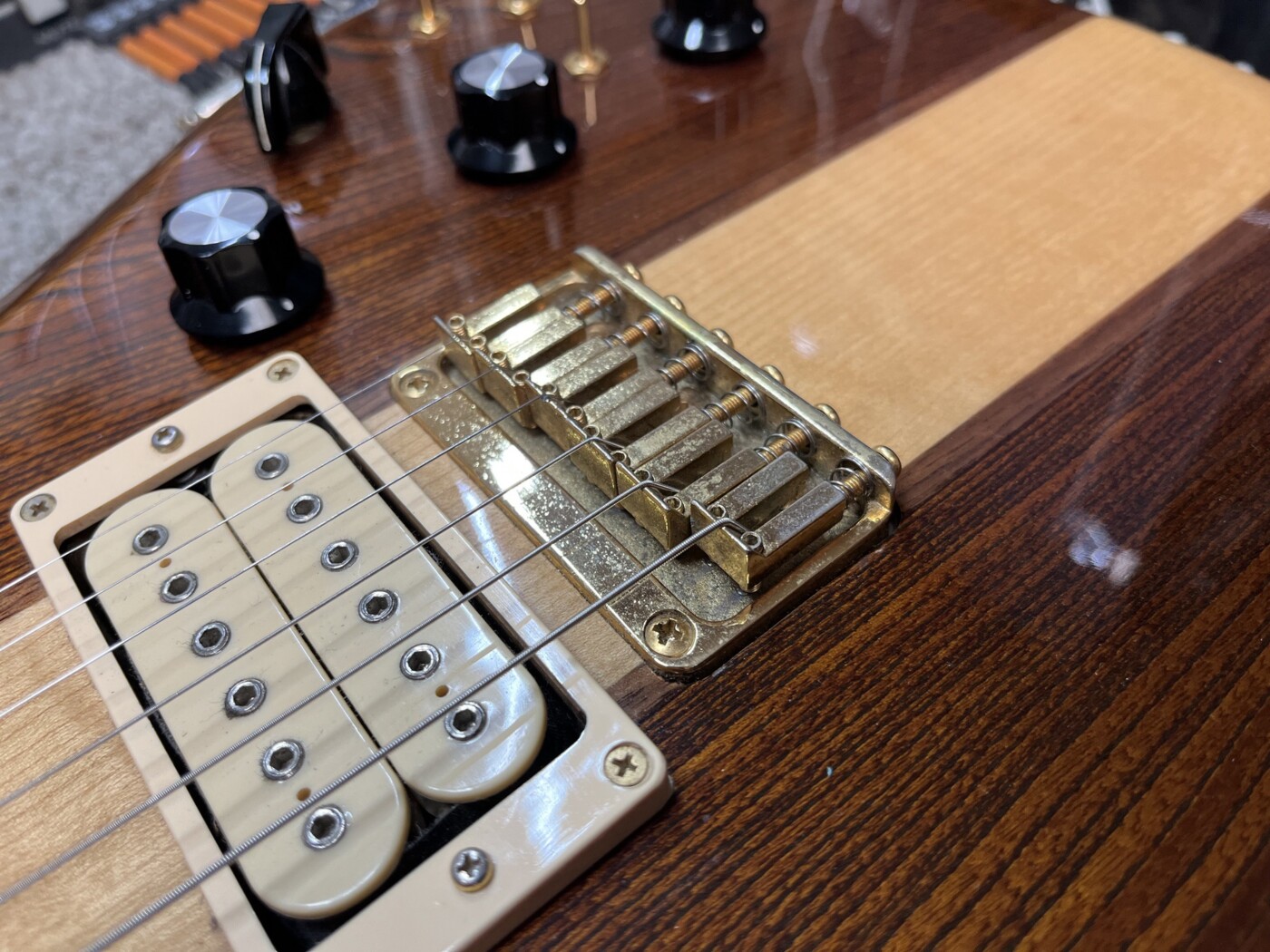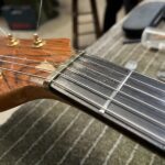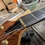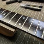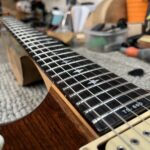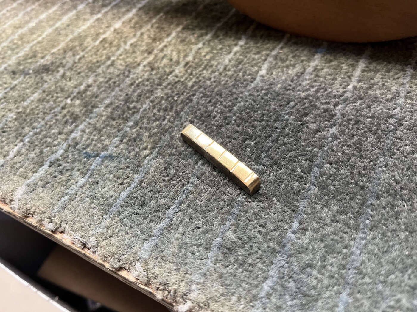 This pristine example of this model had an annoying rattle. The setup seemed fine, although the nut was high (as was the action in an attempt to battle the buzz) so my only option really was to look at the frets. Once I started levelling them I found they were rally uneven.