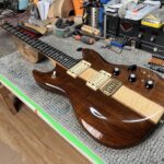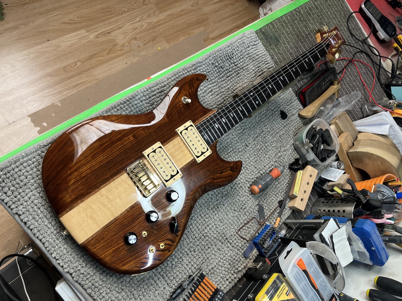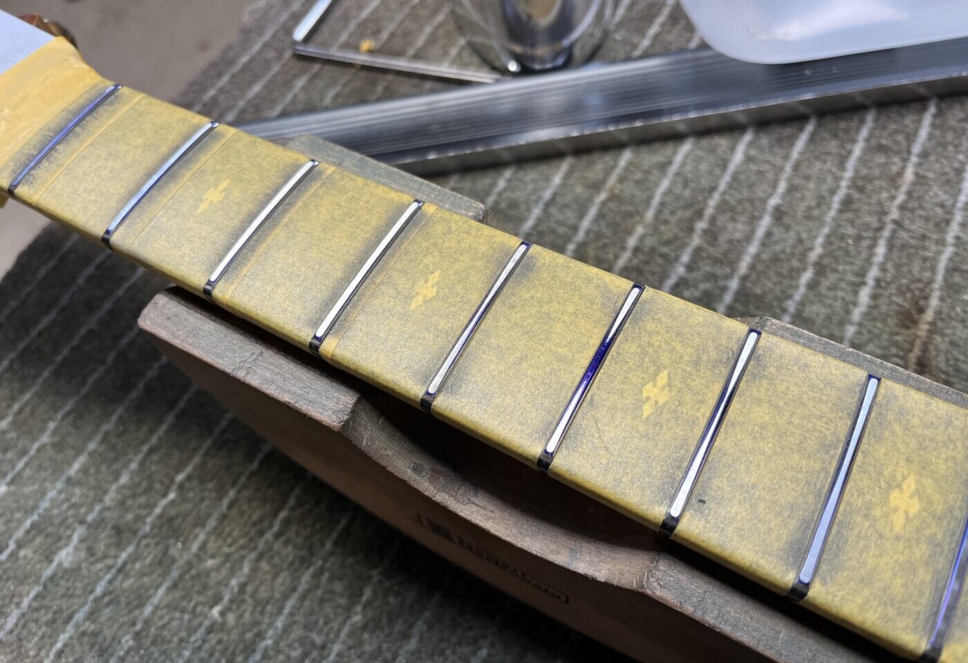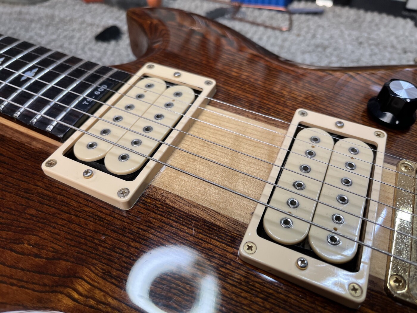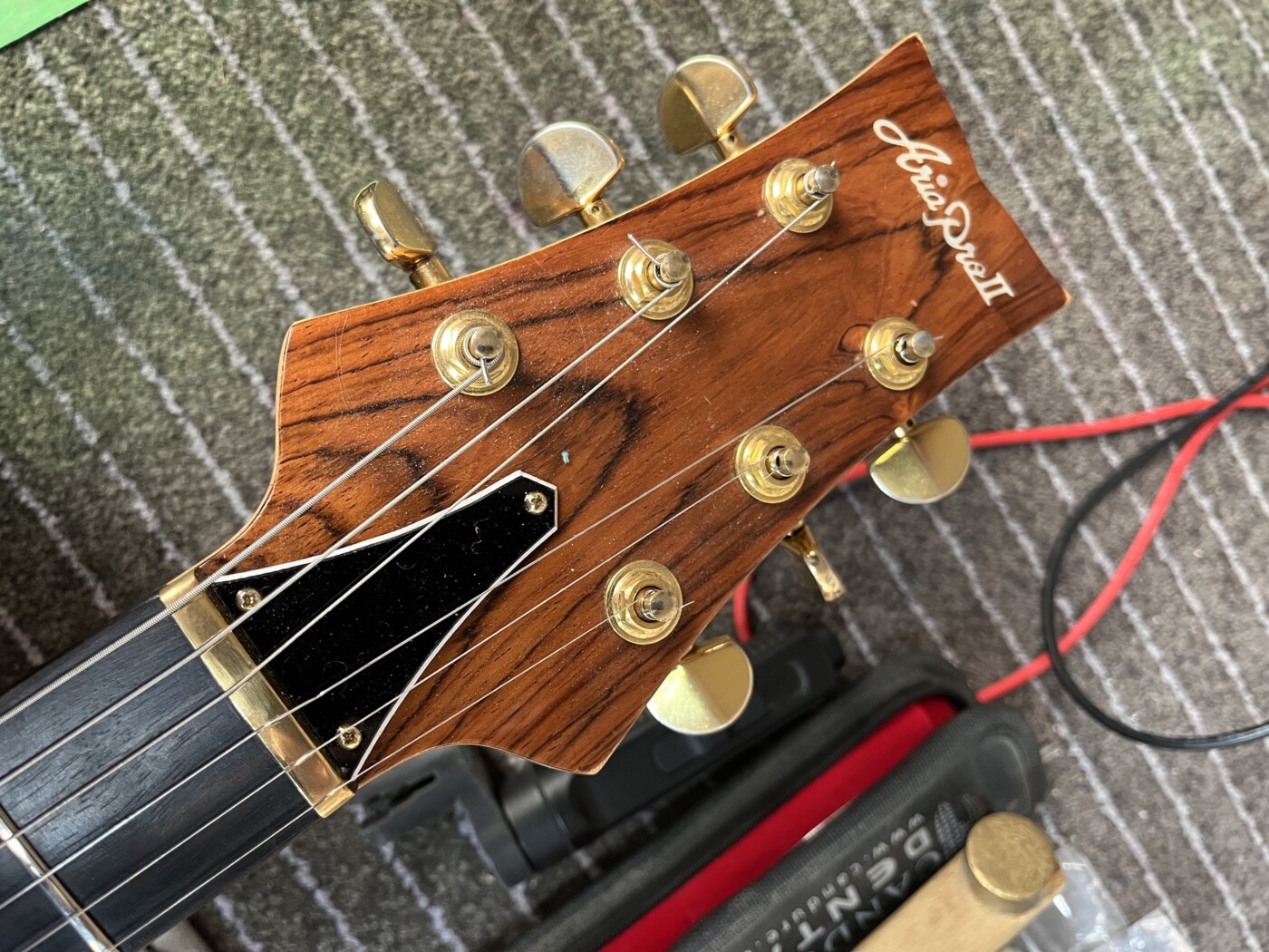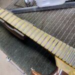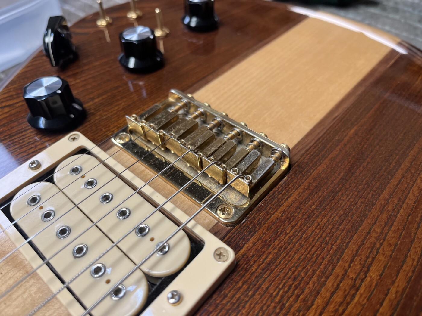 This pristine example of this model had an annoying rattle. The setup seemed fine, although the nut was high (as was the action in an attempt to battle the buzz) so my only option really was to look at the frets. Once I started levelling them I found they were rally uneven.