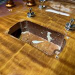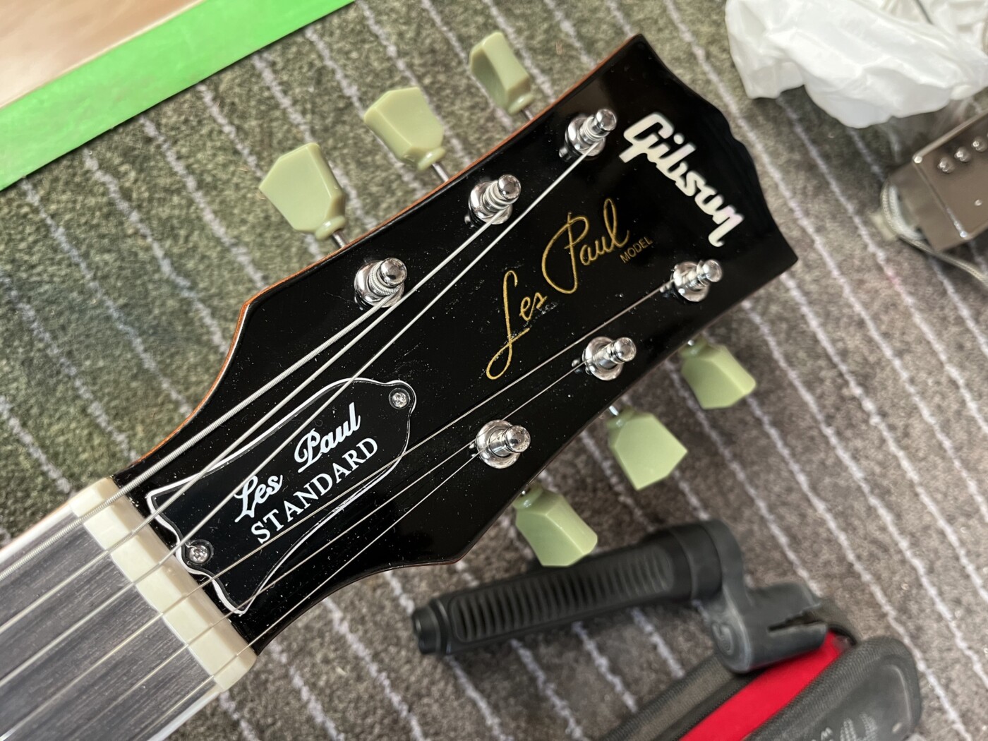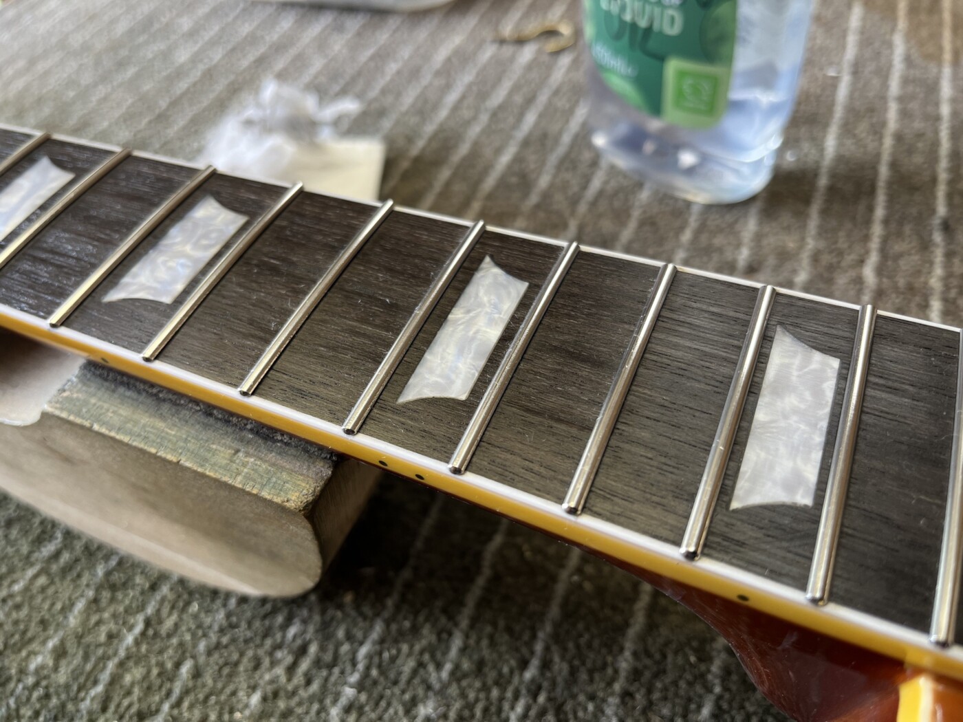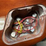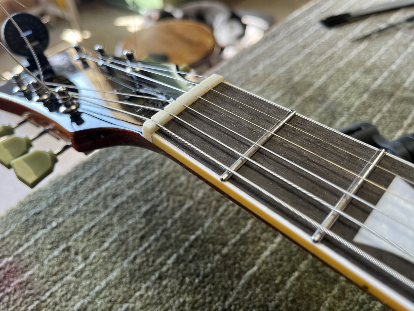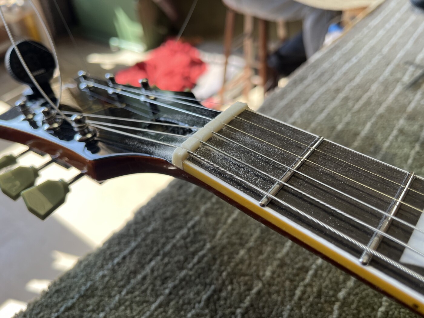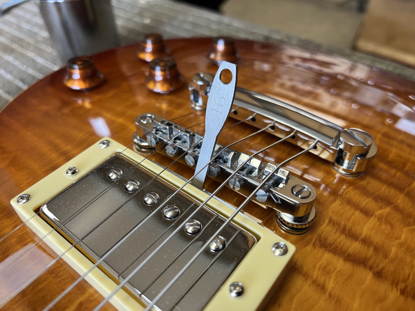 Here’s an example of a “Chibson” knock off. I made a custom “PAF” style pickup for it and along with that installed a Gibson “Greeny” neck pickup with the usual modifications. The fingerboard has a 16″ radius which feels a bit weird but doesn’t play too bad, even without a fret level!