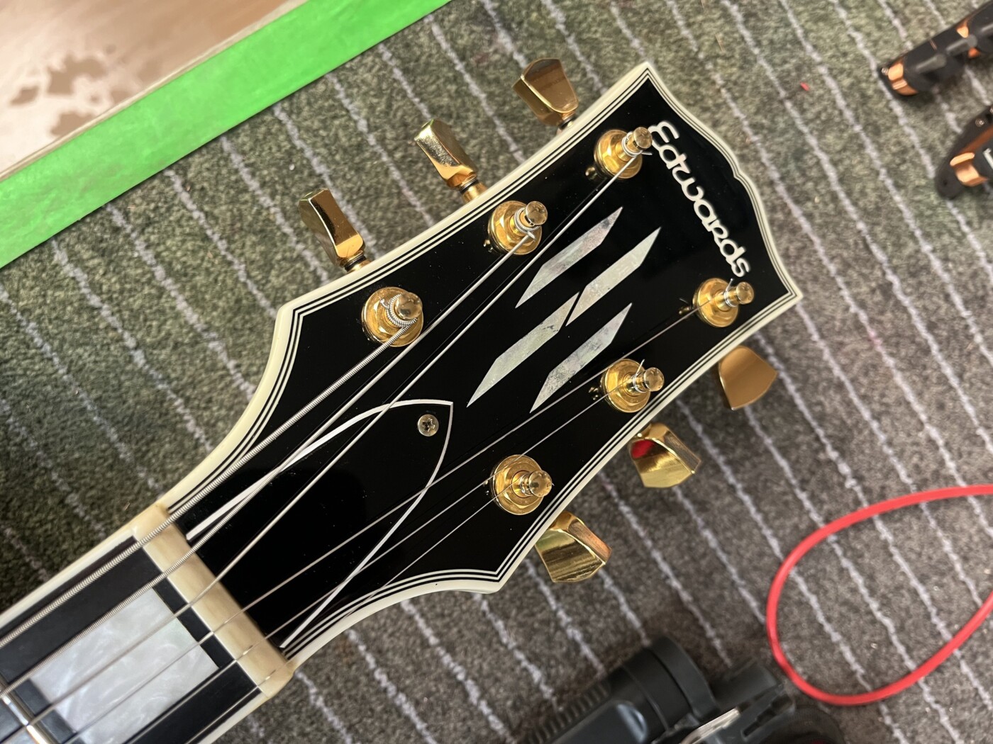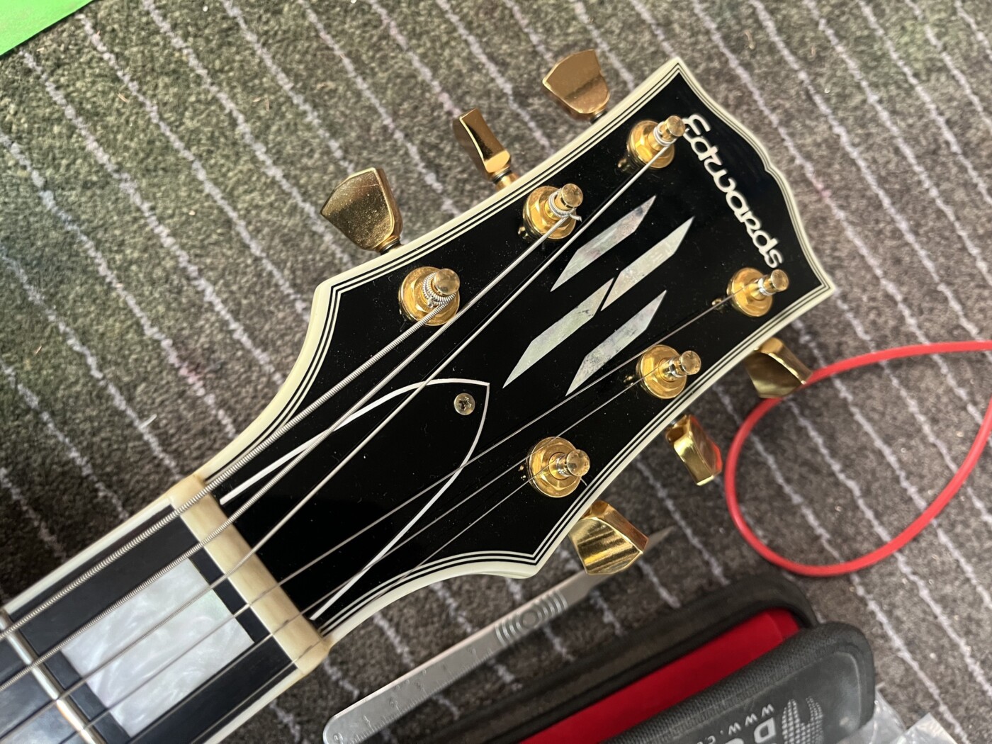 Edwards Les Paul Custom New tuning and new string gauge for this Edwards so it came in for a setup with supplied Ernie Ball 10 – 48. Edwards Les Paul Custom See all projects Edwards Schenker V