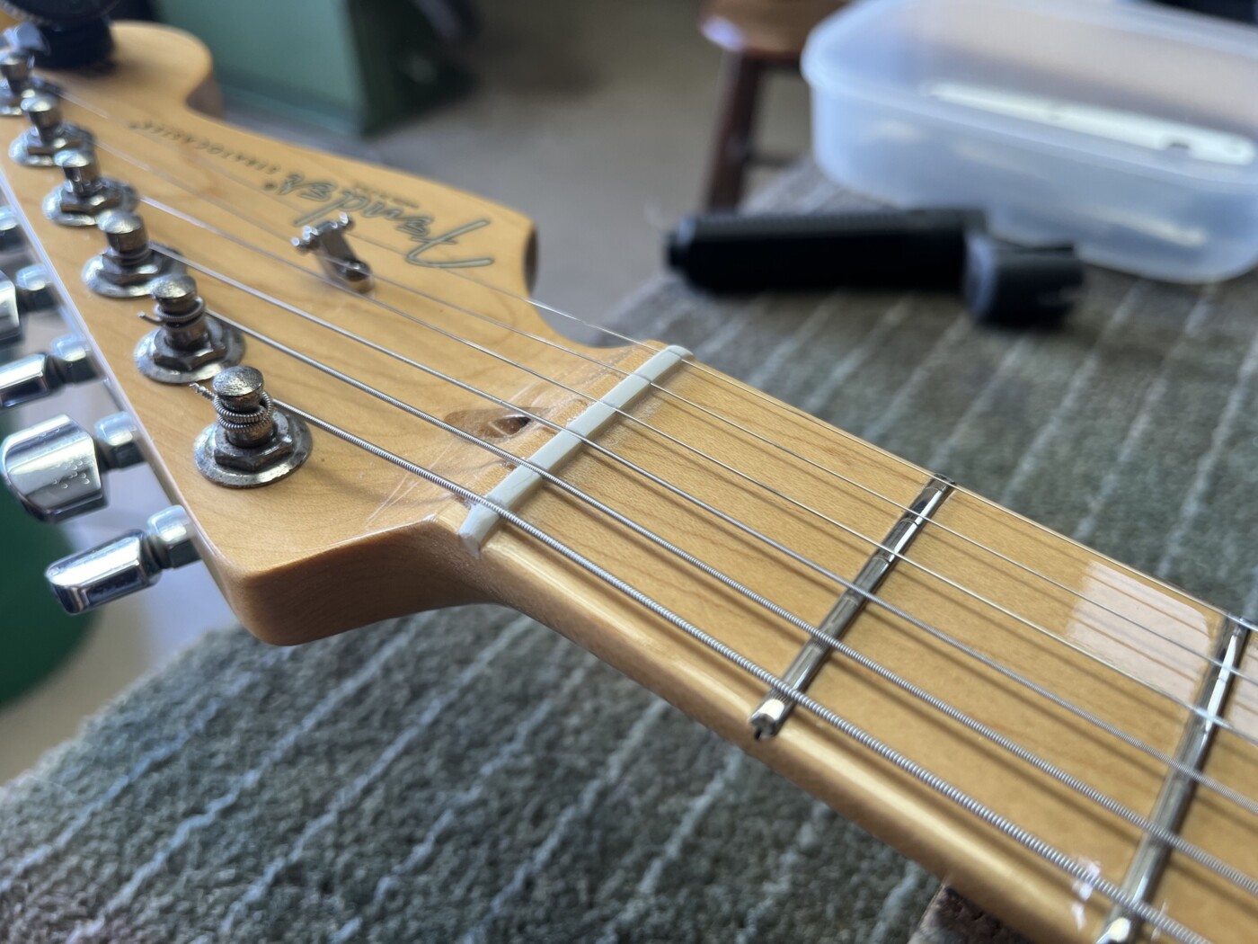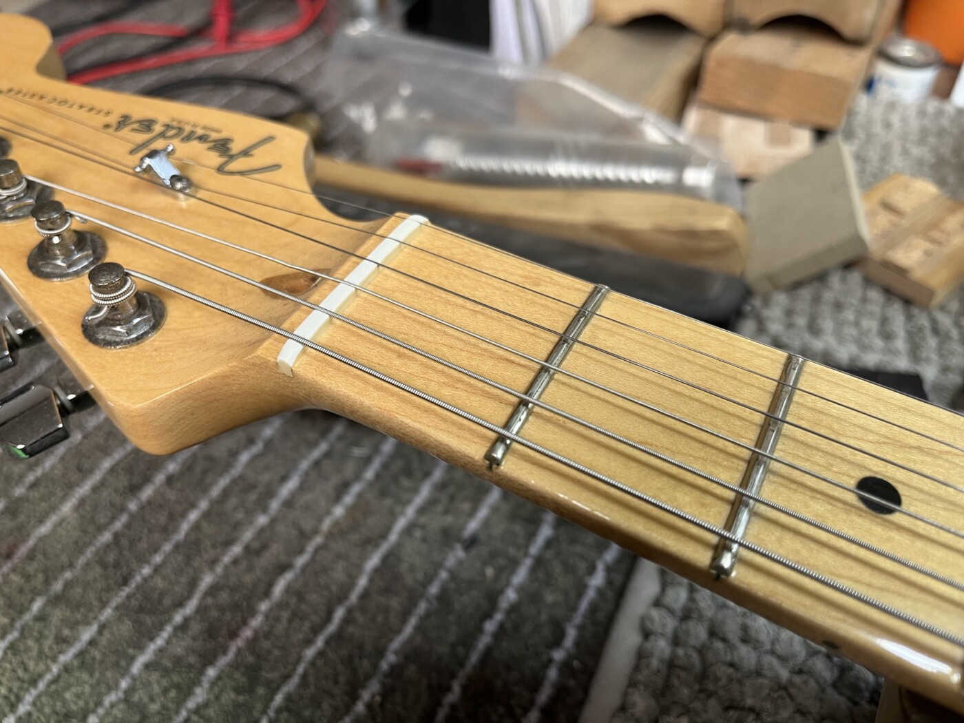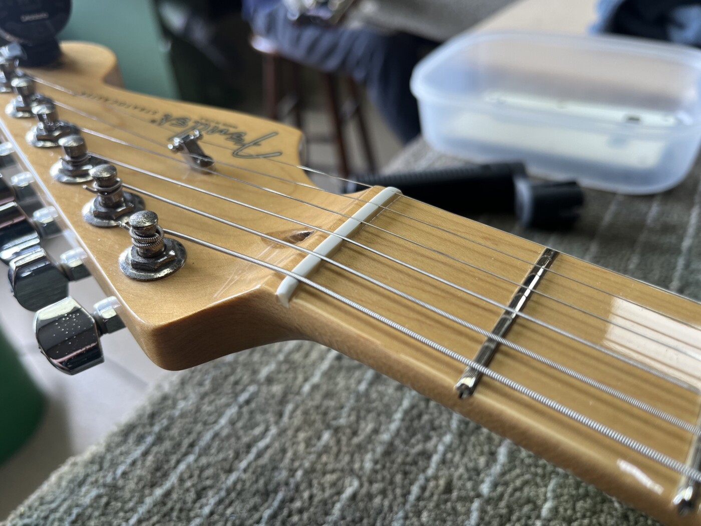 This Strat needed a fret level as the frets were well worn. It came to me after having a setup from someone who said “there was no way to get rid of the fret buzz”. Maybe start with the frets, but also look at how the strings were put on! Sorry, did that sound bitchy?