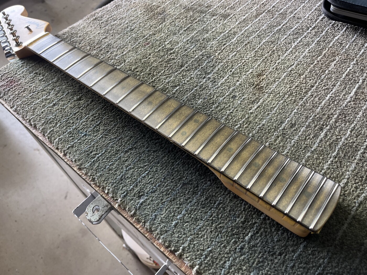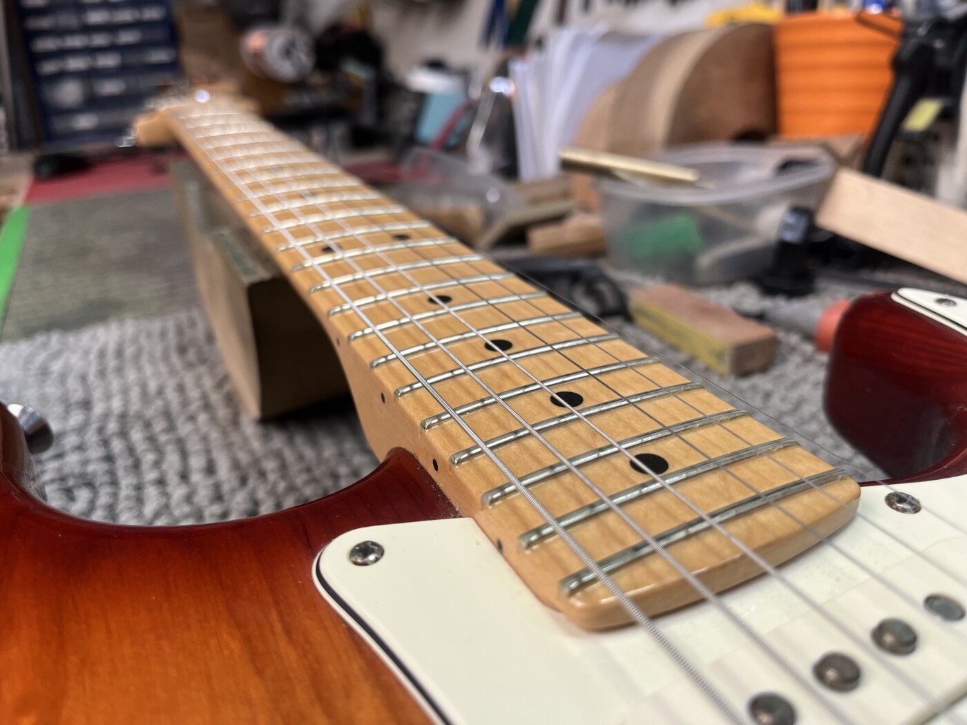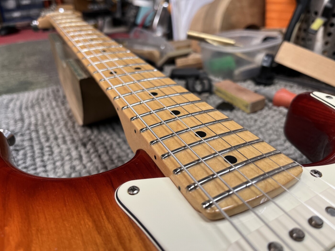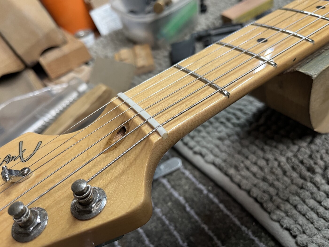 This Strat needed a fret level as the frets were well worn. It came to me after having a setup from someone who said “there was no way to get rid of the fret buzz”. Maybe start with the frets, but also look at how the strings were put on! Sorry, did that sound bitchy?