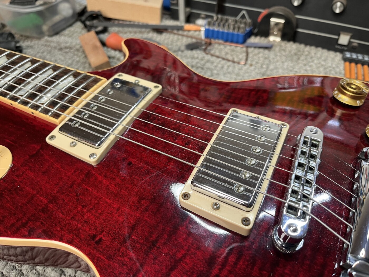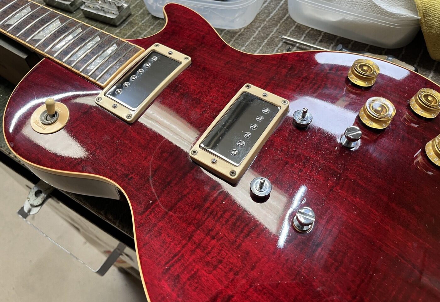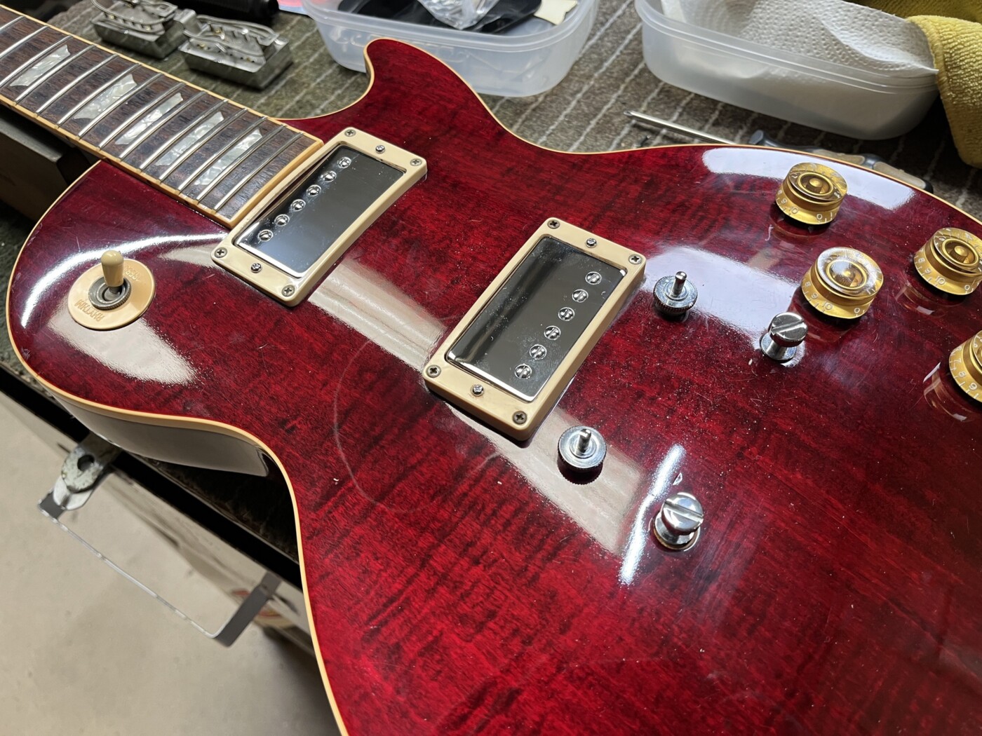 Gave this Les Paul along with installing some custom made OWL PAFs with Alnico II Magnets.
