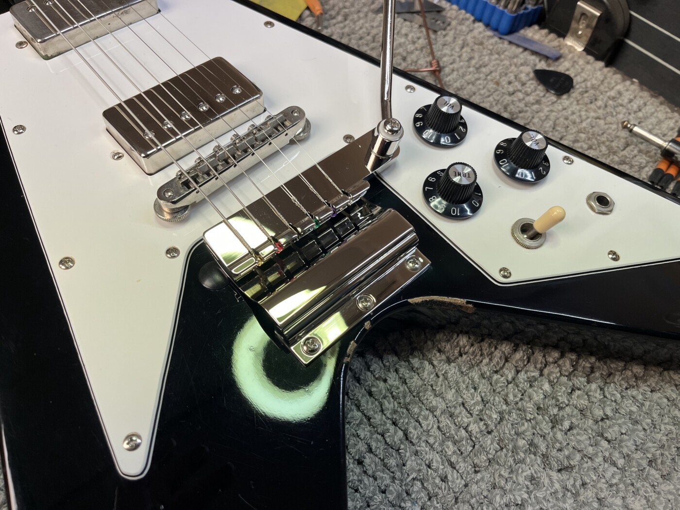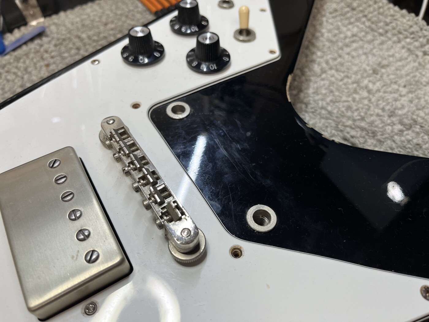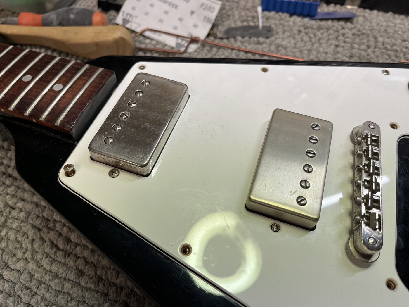 Greco badged as a Gibson wanted the Vibrola fitting, a humbucker (similar to a PRS Dragon II) making and installing and a setup along with a few other bits, including moving the bridge earth.