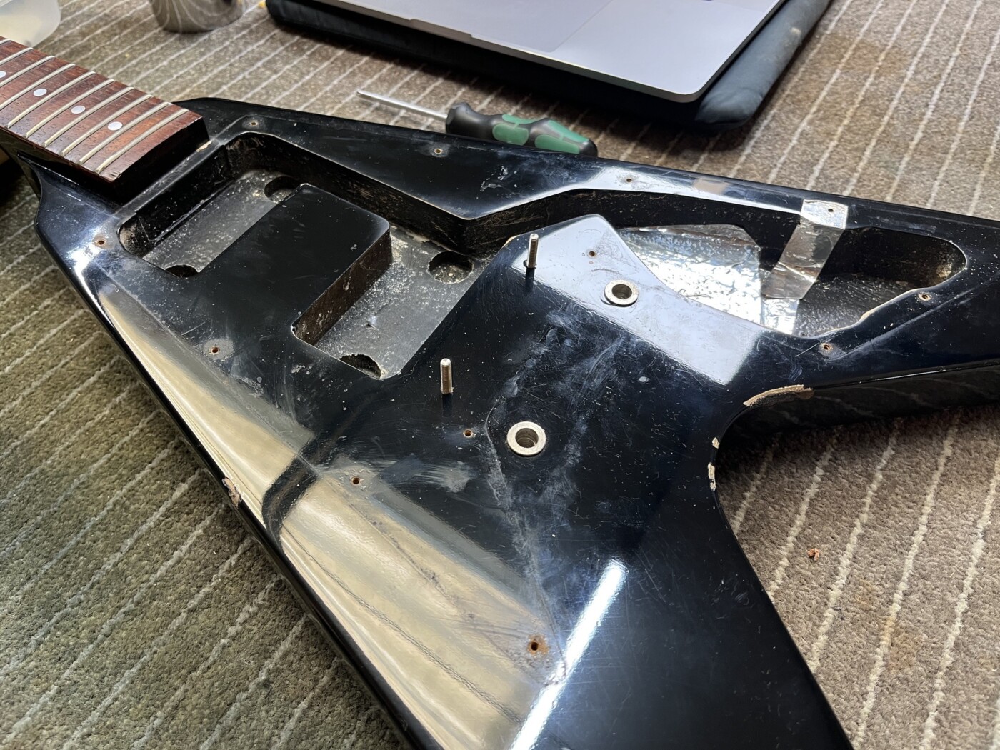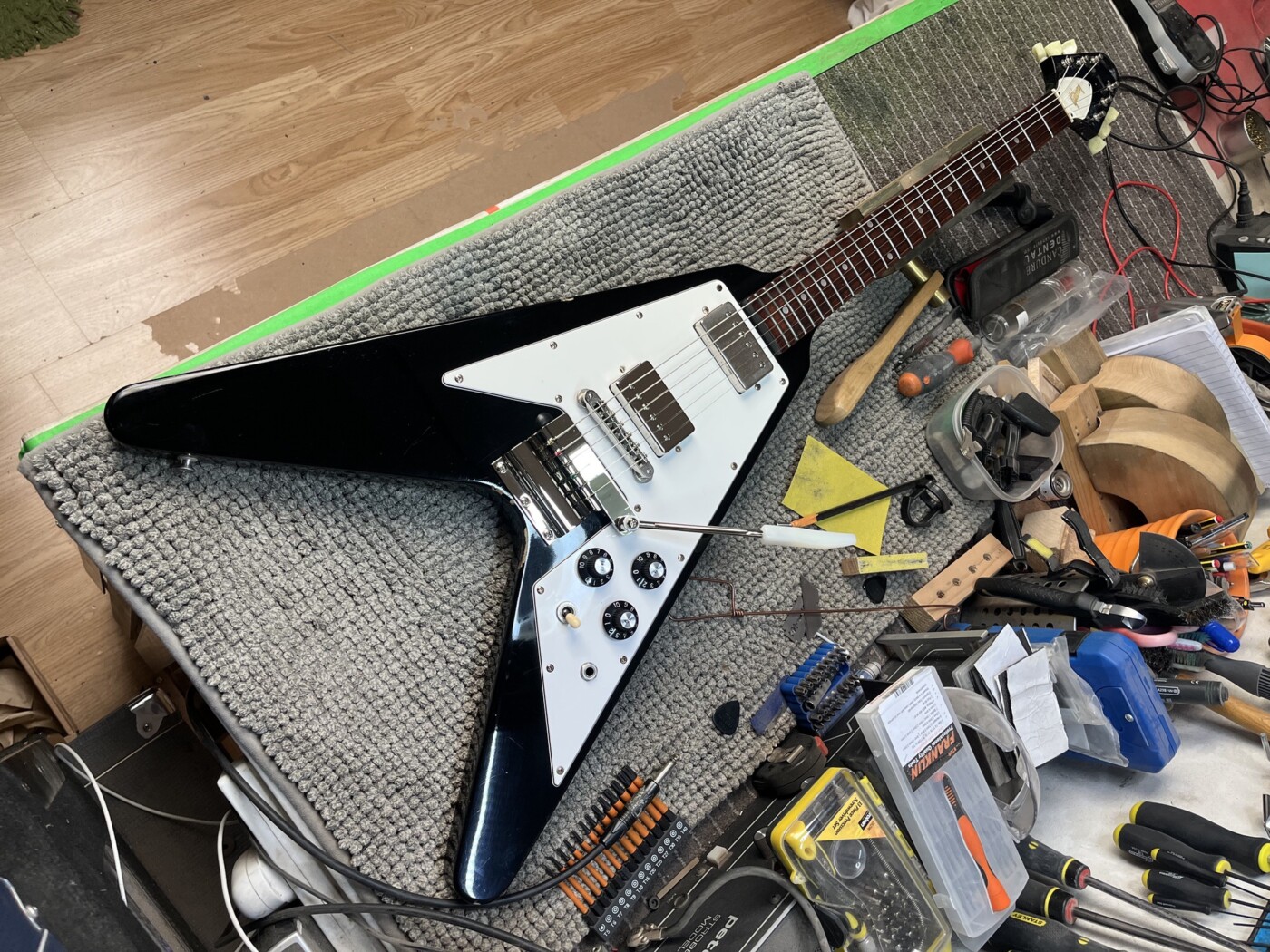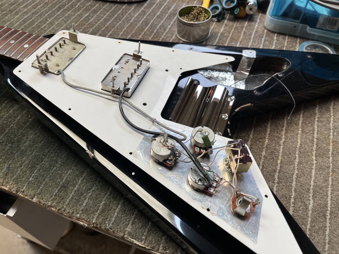 Greco badged as a Gibson wanted the Vibrola fitting, a humbucker (similar to a PRS Dragon II) making and installing and a setup along with a few other bits, including moving the bridge earth.