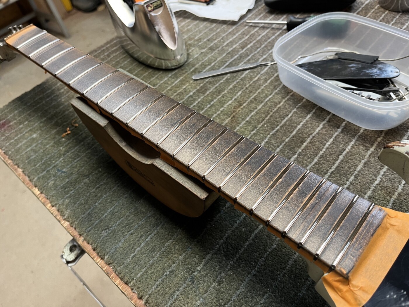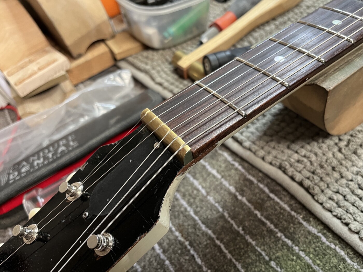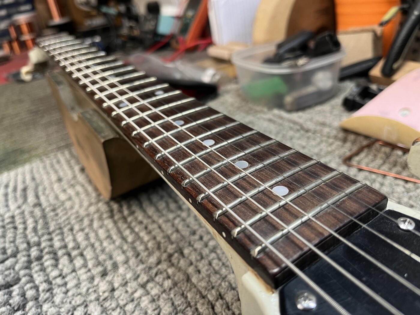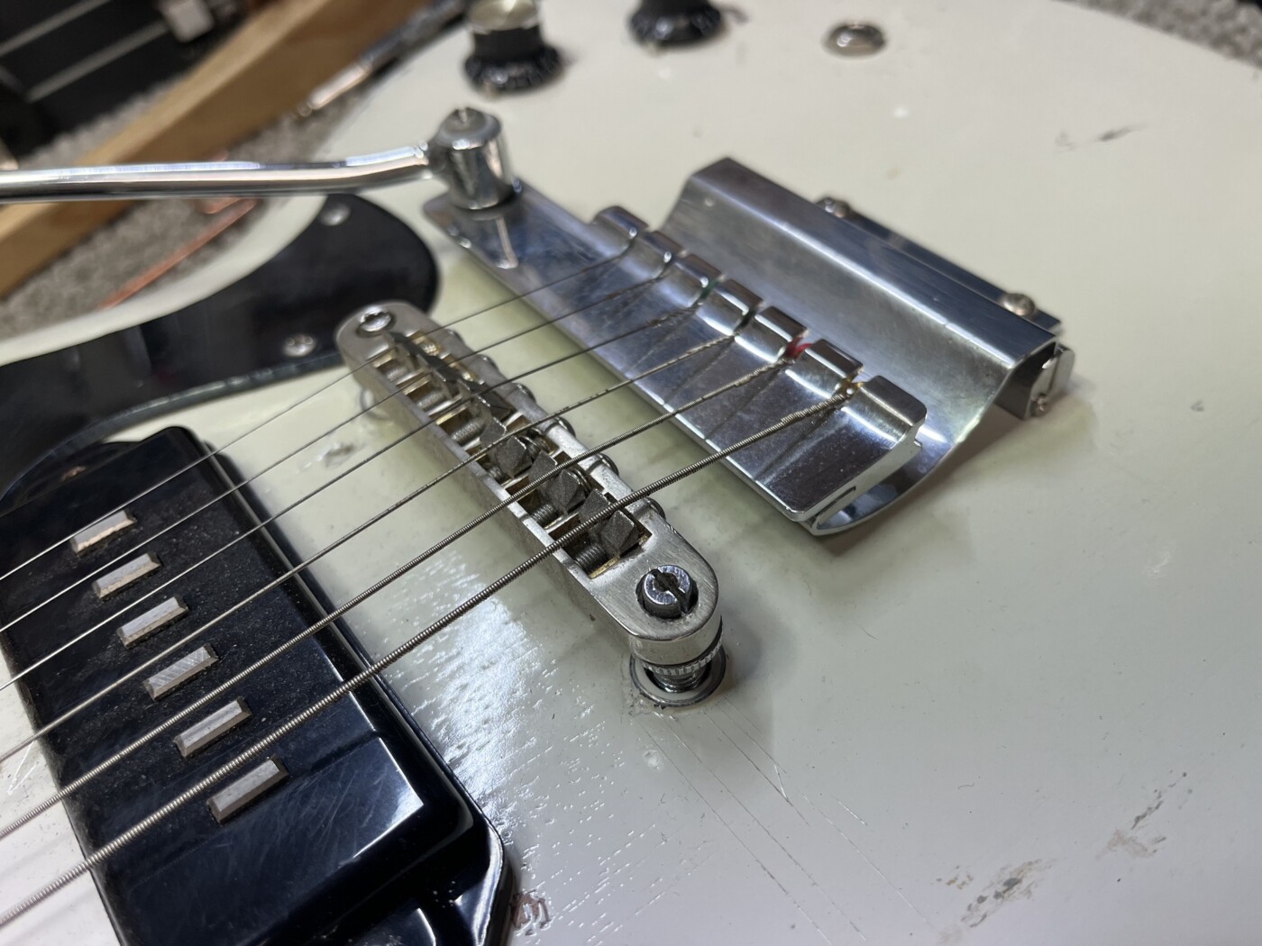 Hand Made SG (White) This SG had a setup and I made a P90 to replace the Staple one that was in it. Setup with D’Addario 10 – 46. Hand Made Charvel Copy See all projects Harley Benton 25th Anniversary Tele