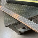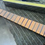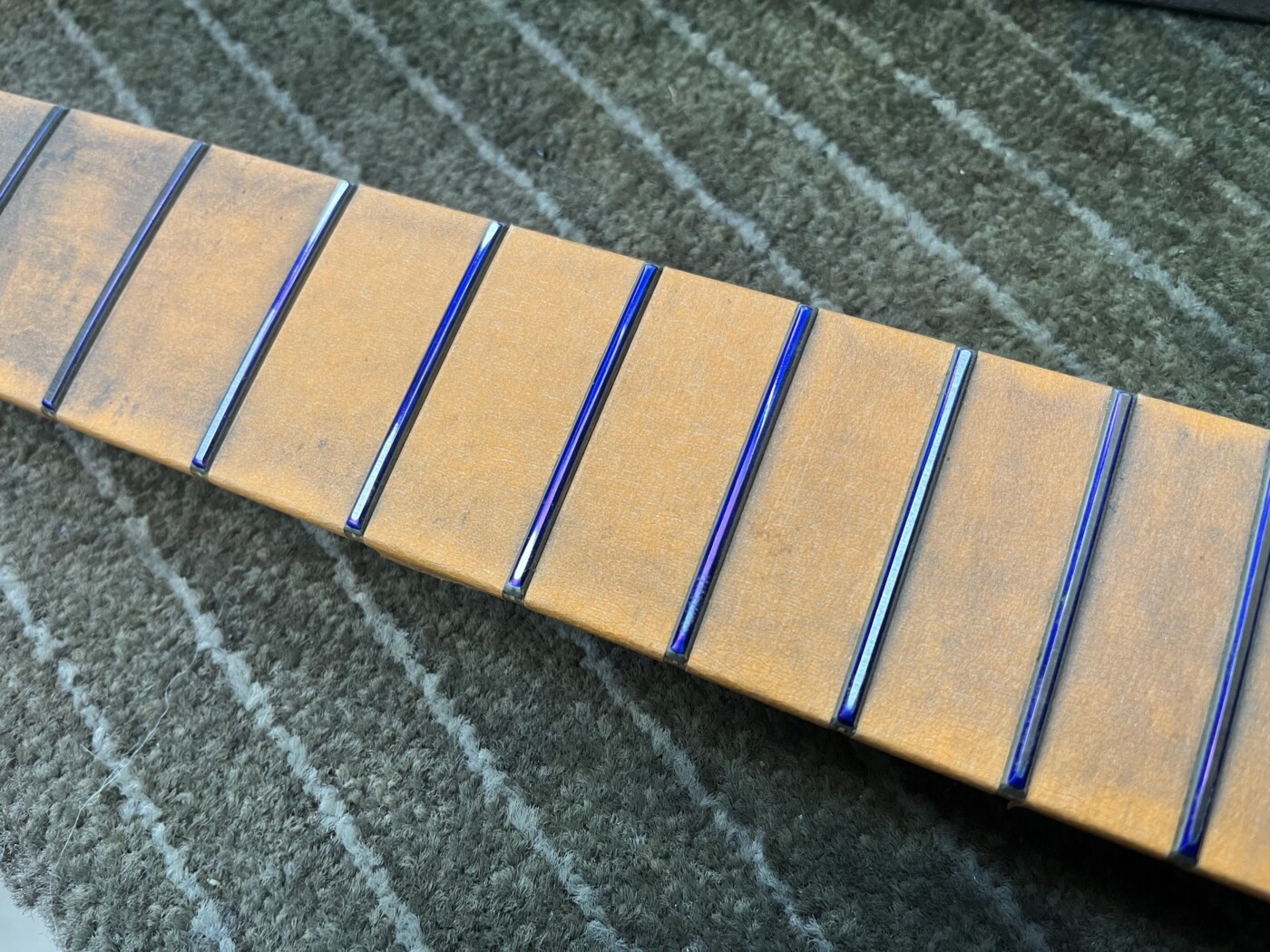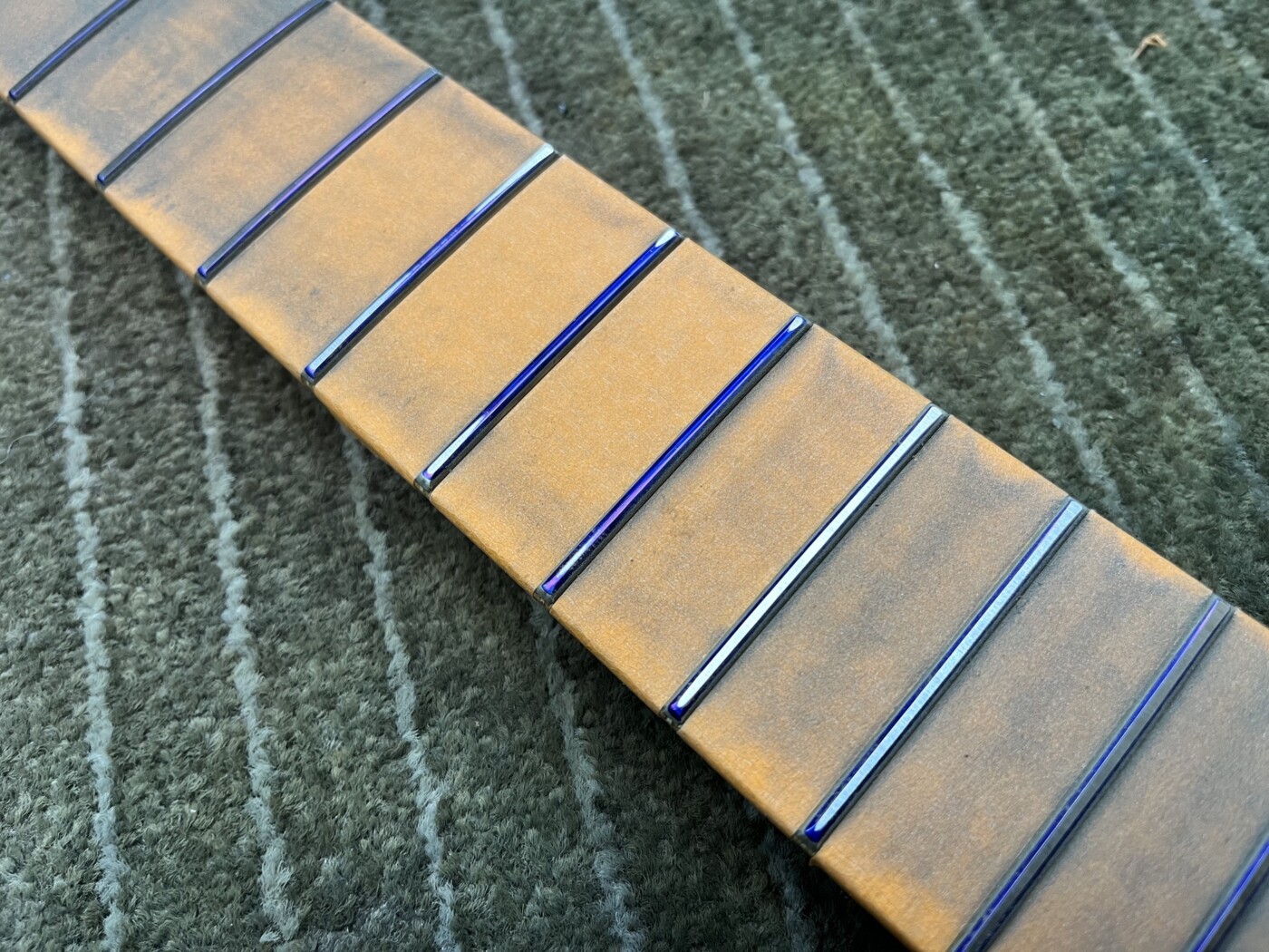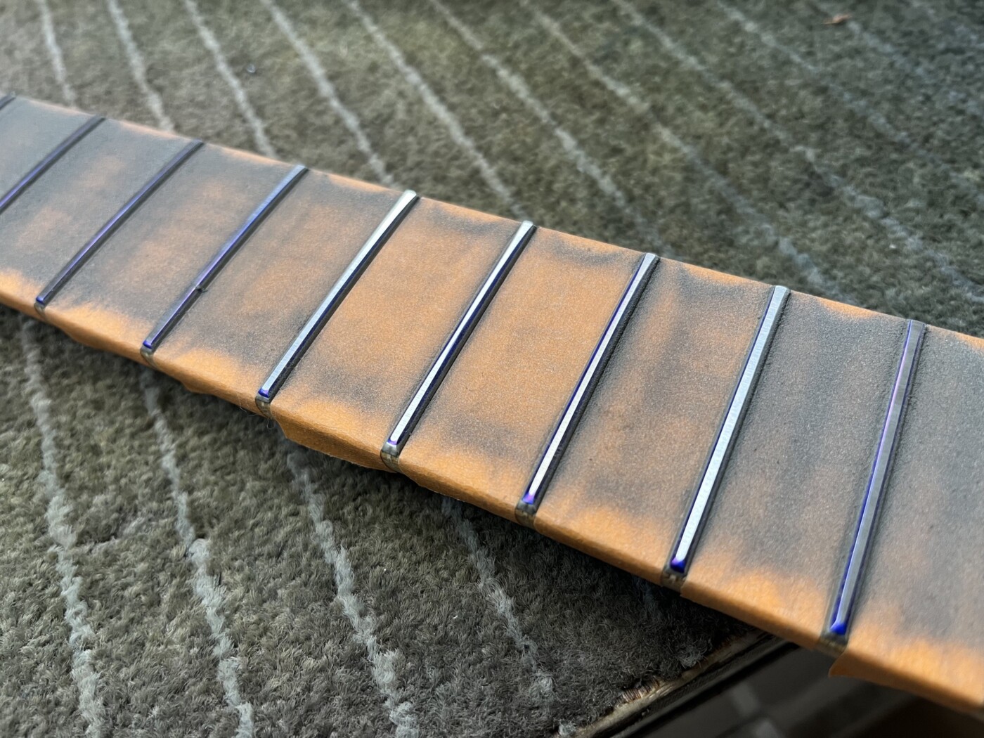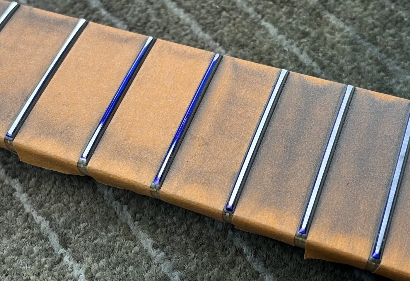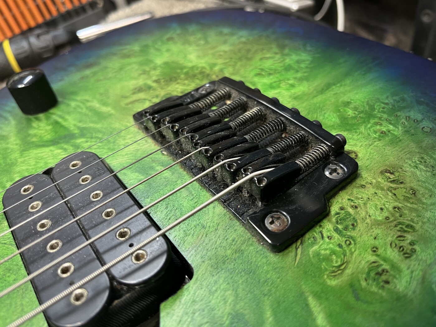 I gave this Ibanez a much needed fret level. The neck was shaped like an S and there was a real low spot around the 9th and 10th fret, especially on the D and G strings.