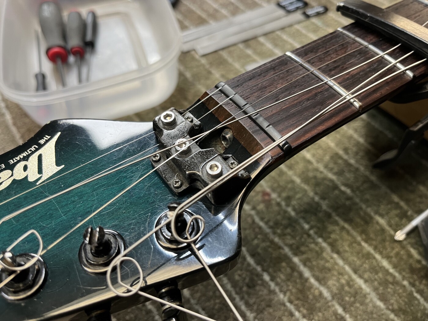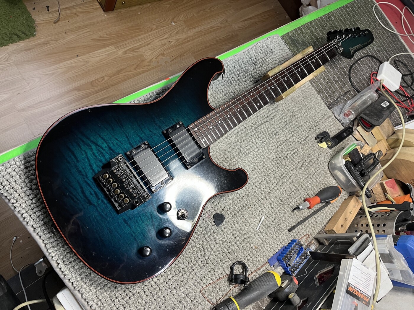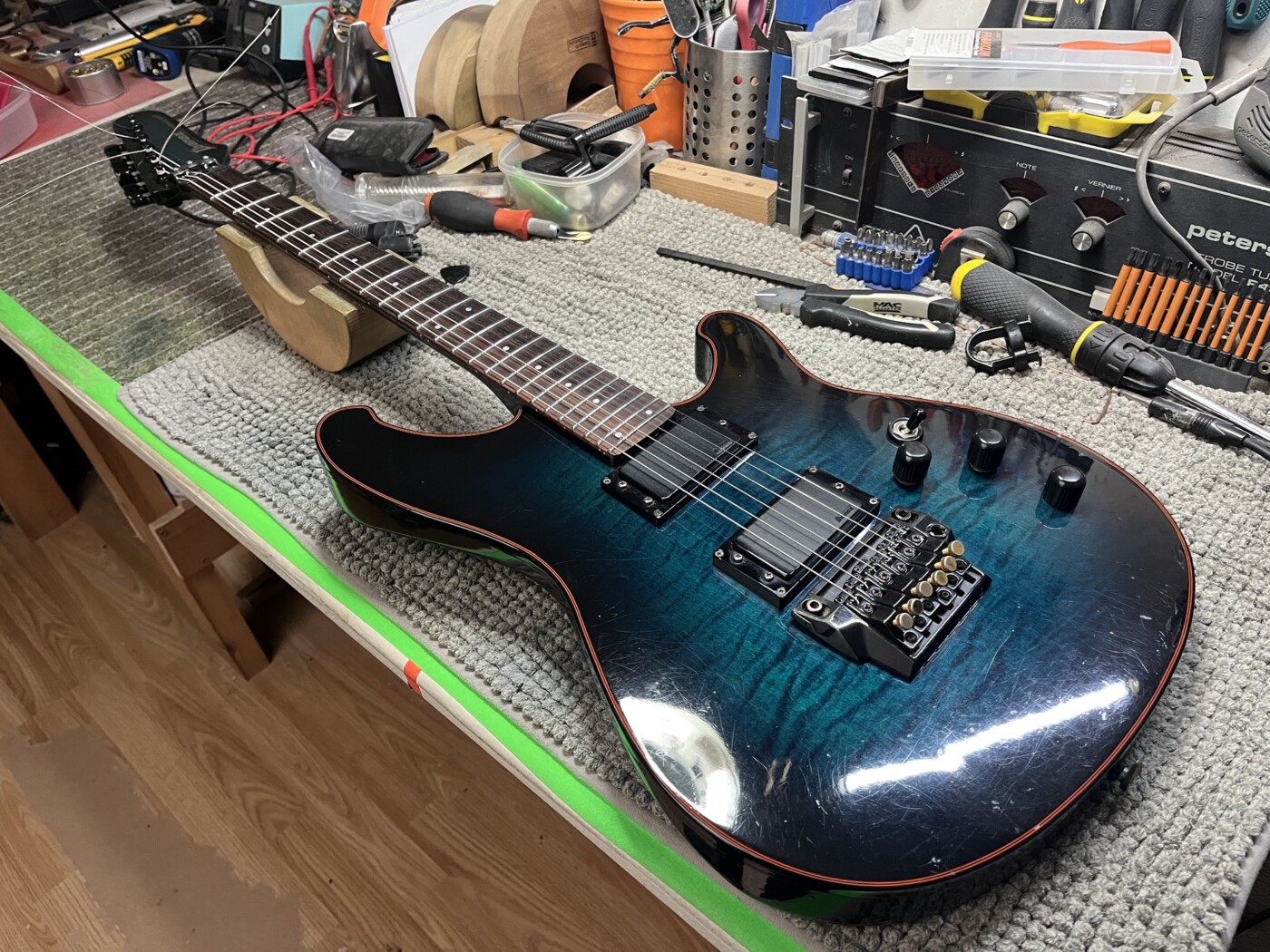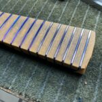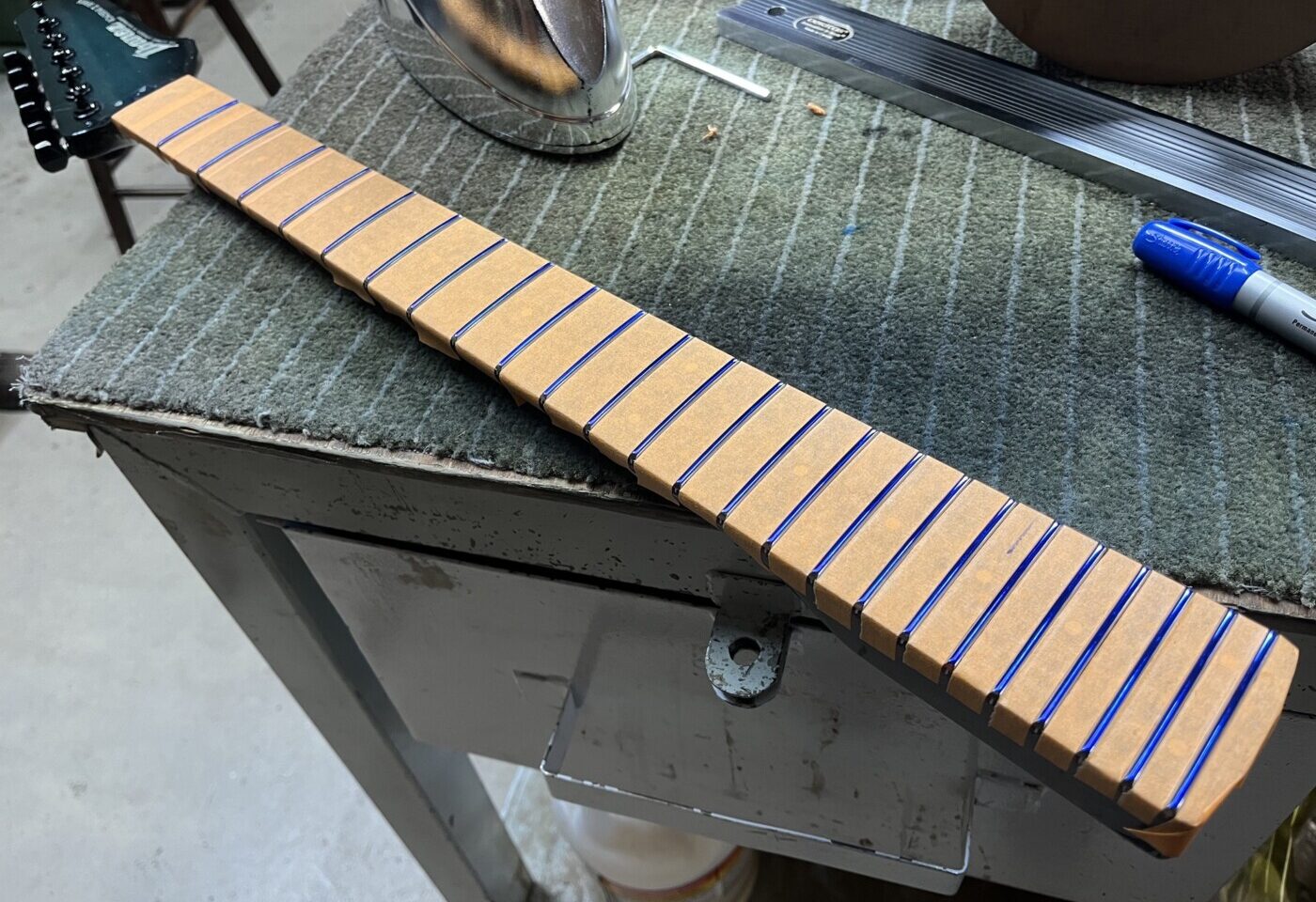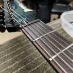 I re-fretted this guitar a while back. It’s come back with a suspected high 5th fret. On inspection it turned out that the 4th was actually low along with a few other frets. In fact once I levelled them it became apparent that the whole neck had moved around substantially.