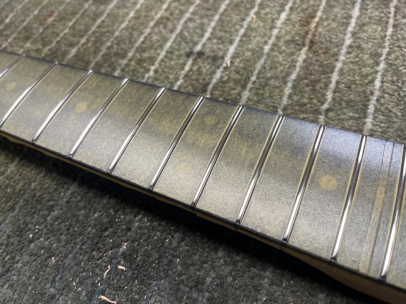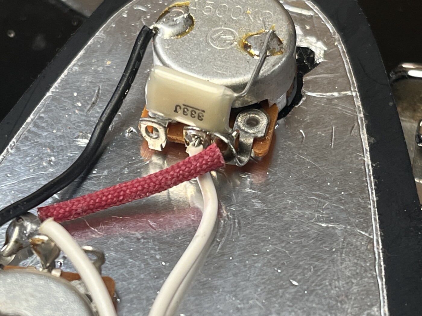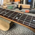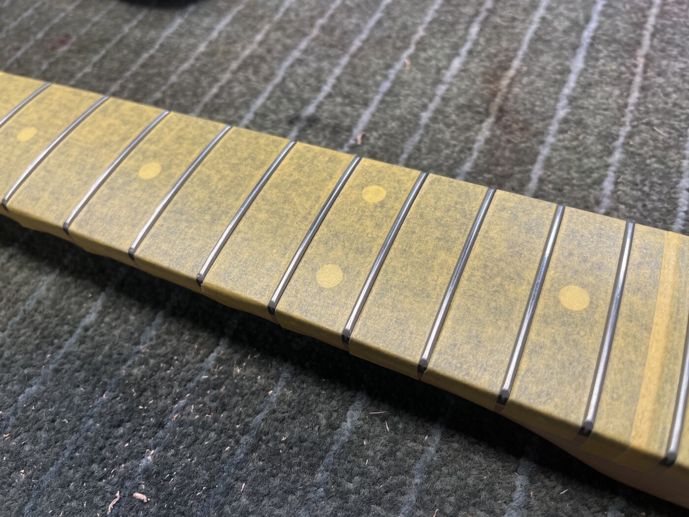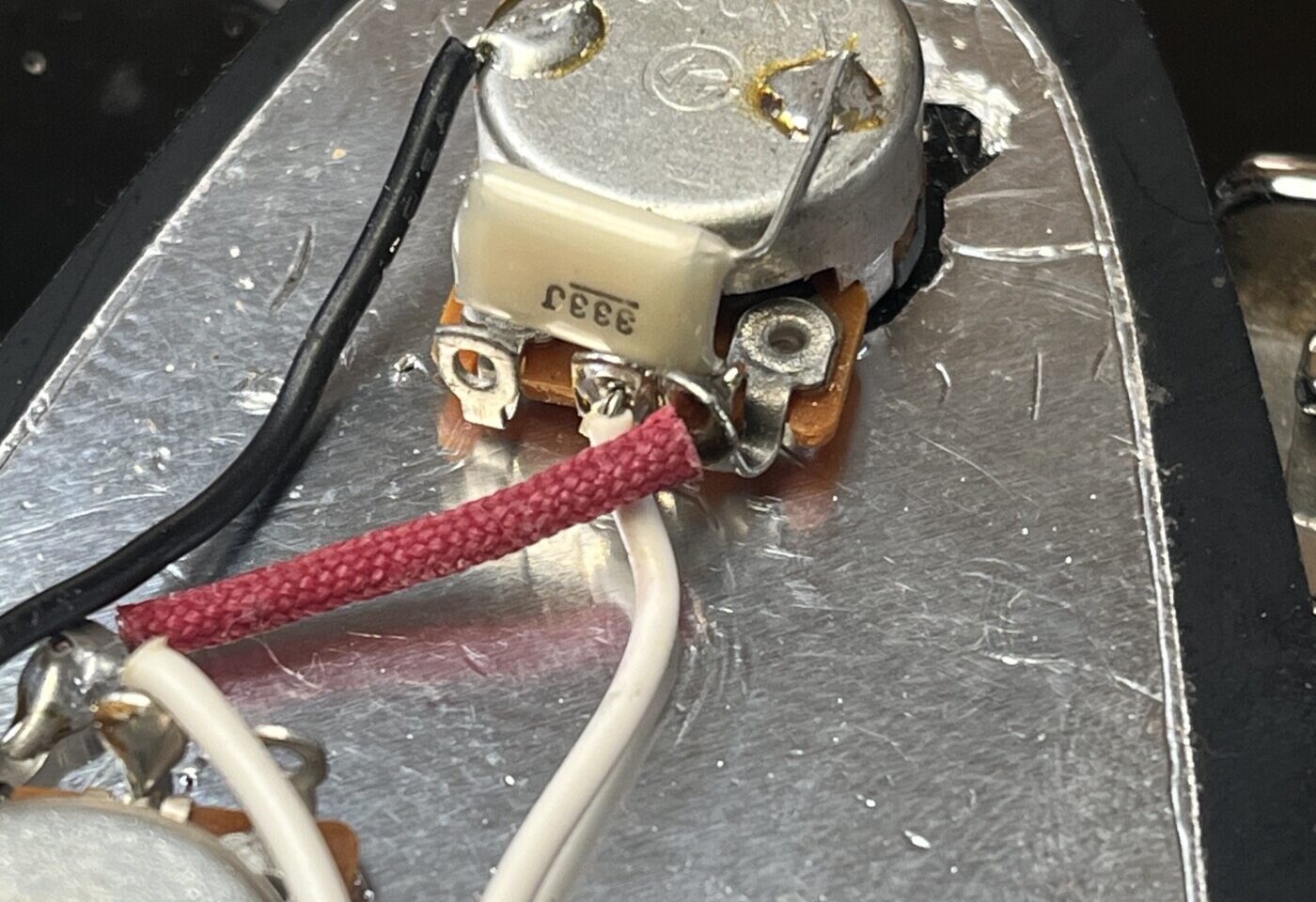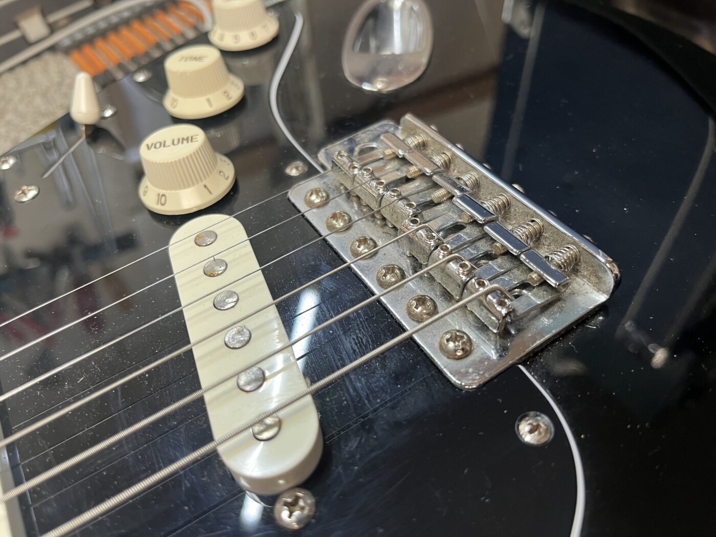 Fairly straight forward setup on this Squier. The treble tone pot was always off when switched in which suggested there was some kind of short circuit. On inspection I was proofed right and one of the lugs was bent over onto the output lug. There wasn’t enough relief in the neck and I loosened the truss rod as much as I could which gave me the tiniest amount, I suspect when the neck was stripped it caused the neck to warp into a back bow. Seems passable but I guess time will tell.