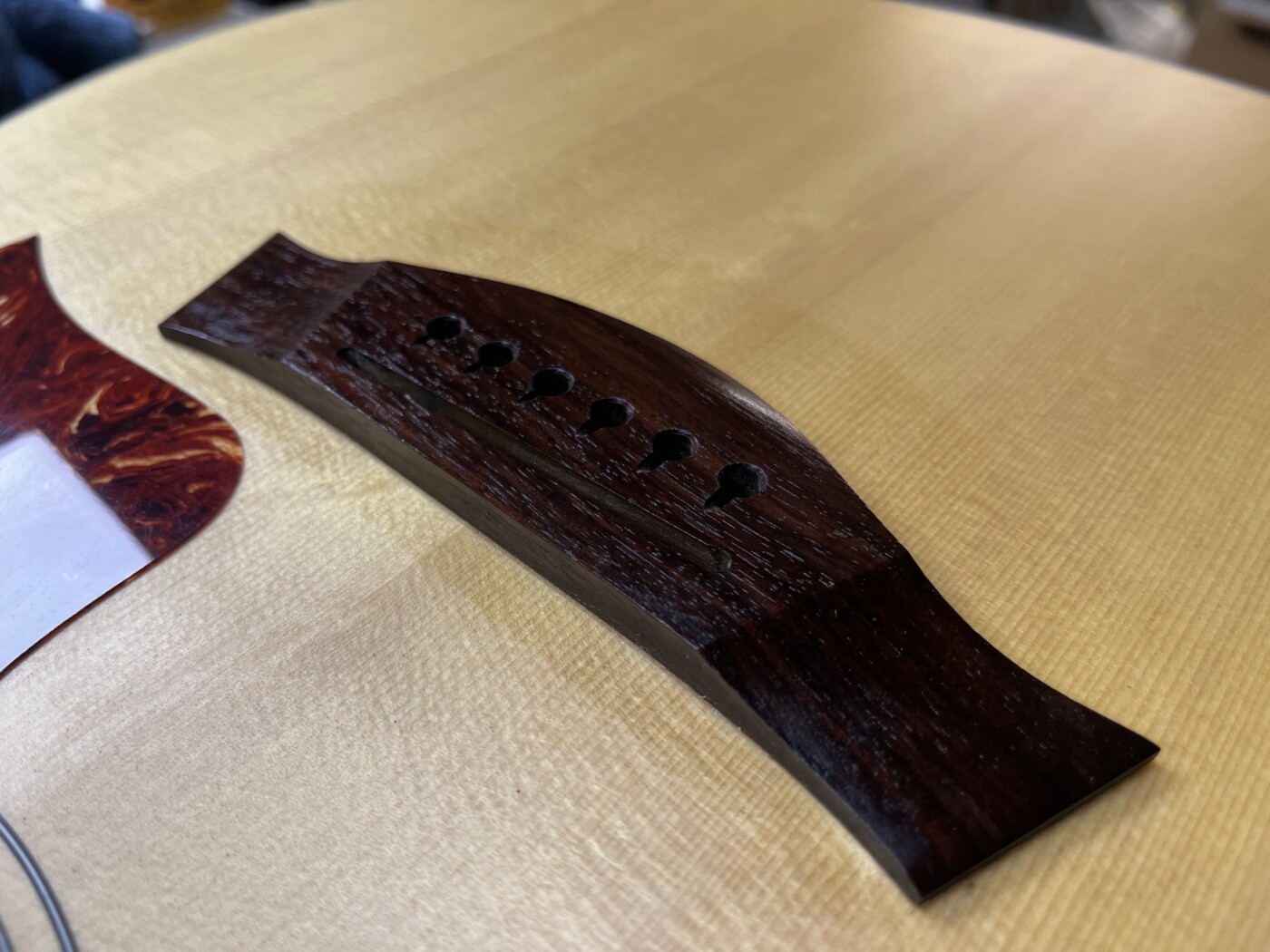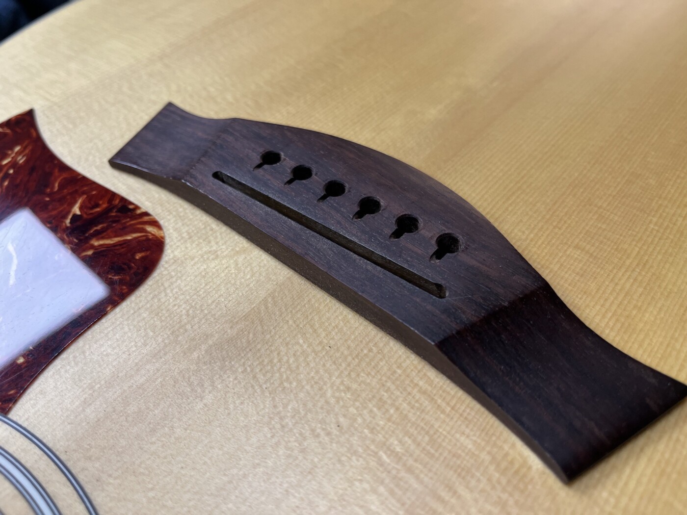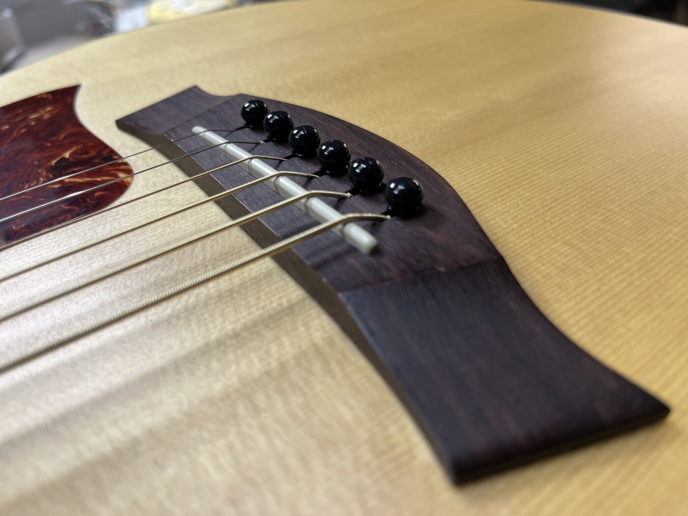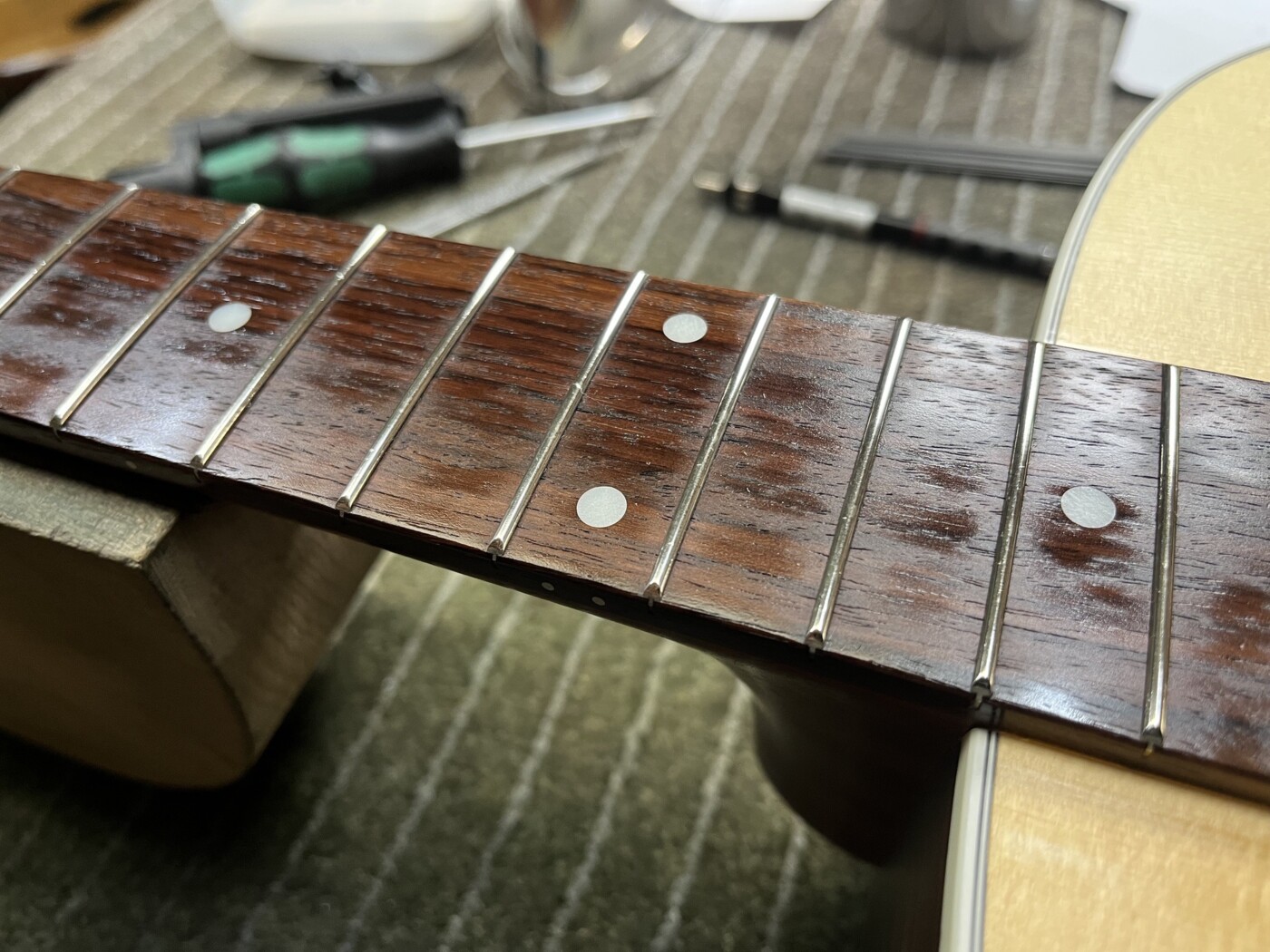 My initial assessment of this guitar was that the neck needed resetting (a straight forward Jon on a Taylor) but the owner was happier for me to do the work in parts, so I did a setup first. The action hasn’t really changed even though the saddle has been lowered, but with more relief that was required it’s not really made a difference. Watch this space…